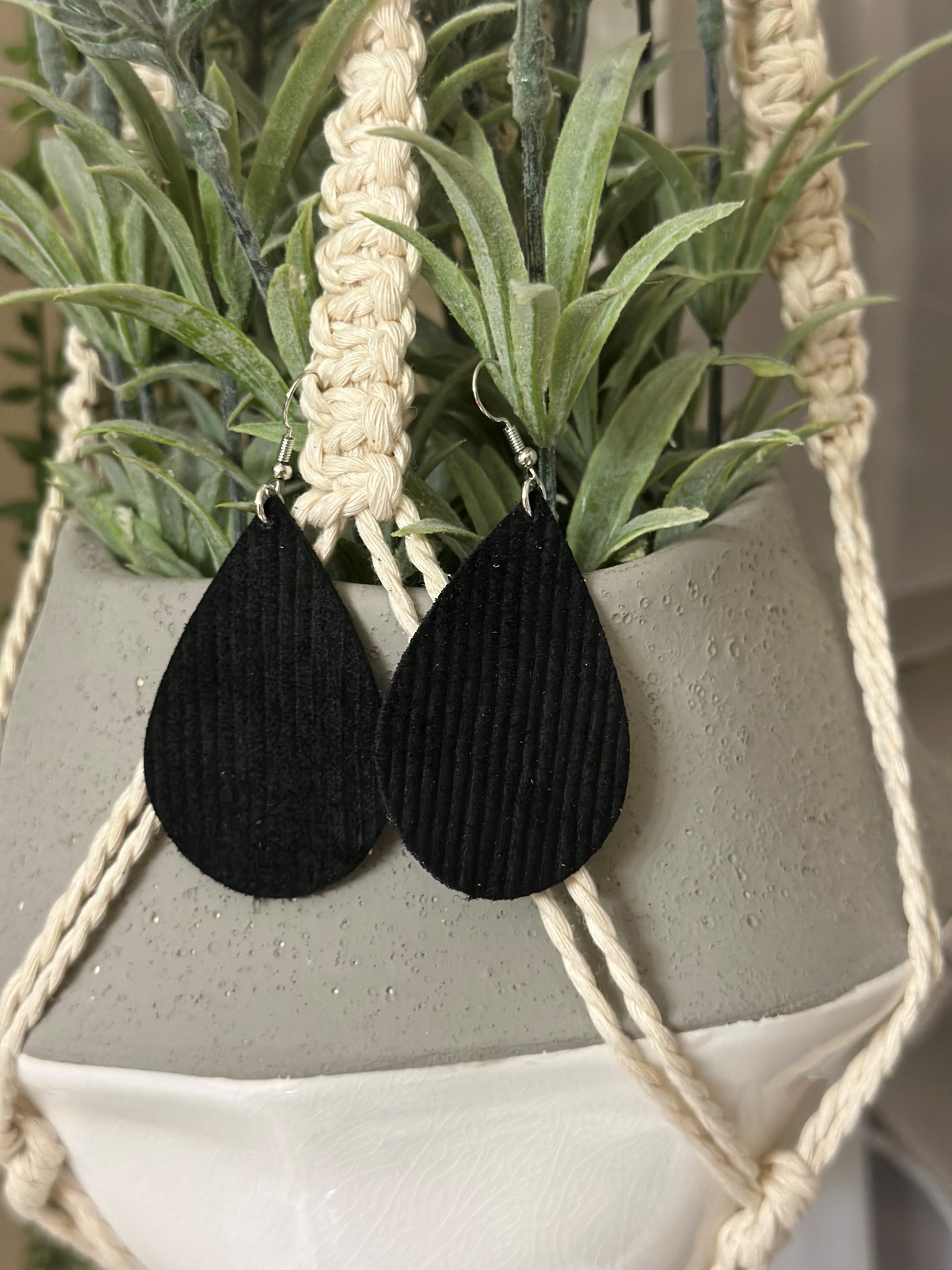 Simple and stylish leather earrings featuring a soft and textured finish. They are lightweight and versatile. Perfect to pair with any outfit. Finished with silver-tone hooks for a clean, minimalist look.