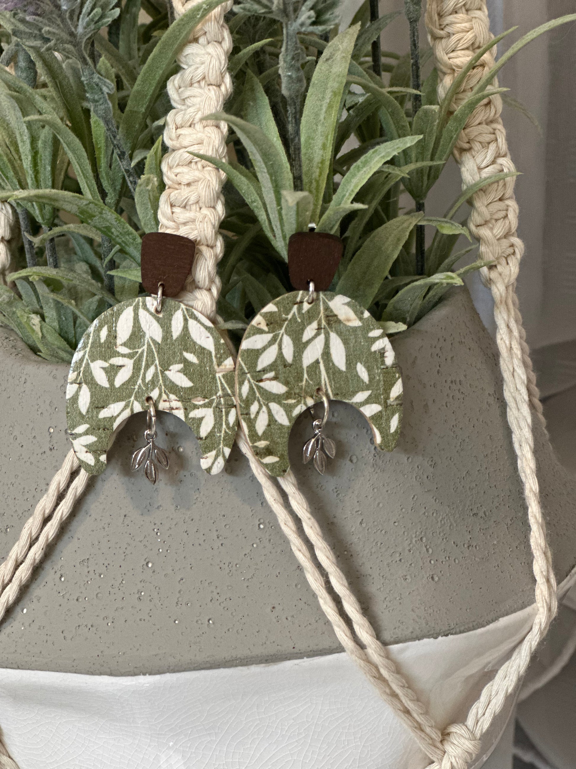 These earrings feature an earthy, nature inspired design combining texture and organic shapes. Finished off with dainty leaf charm and a wooden stud made with a hypoallergenic and nickel free silver post.