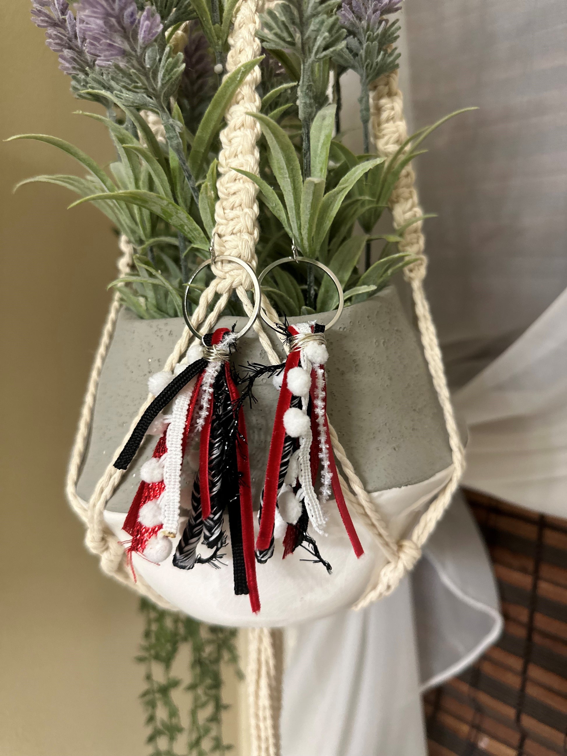 Cheer on the Georgia Bulldogs with our new spin on Game Day this year. Hand selected ribbons secured to an oval silver hoop. Fun and perfect for your Game Day outfit!