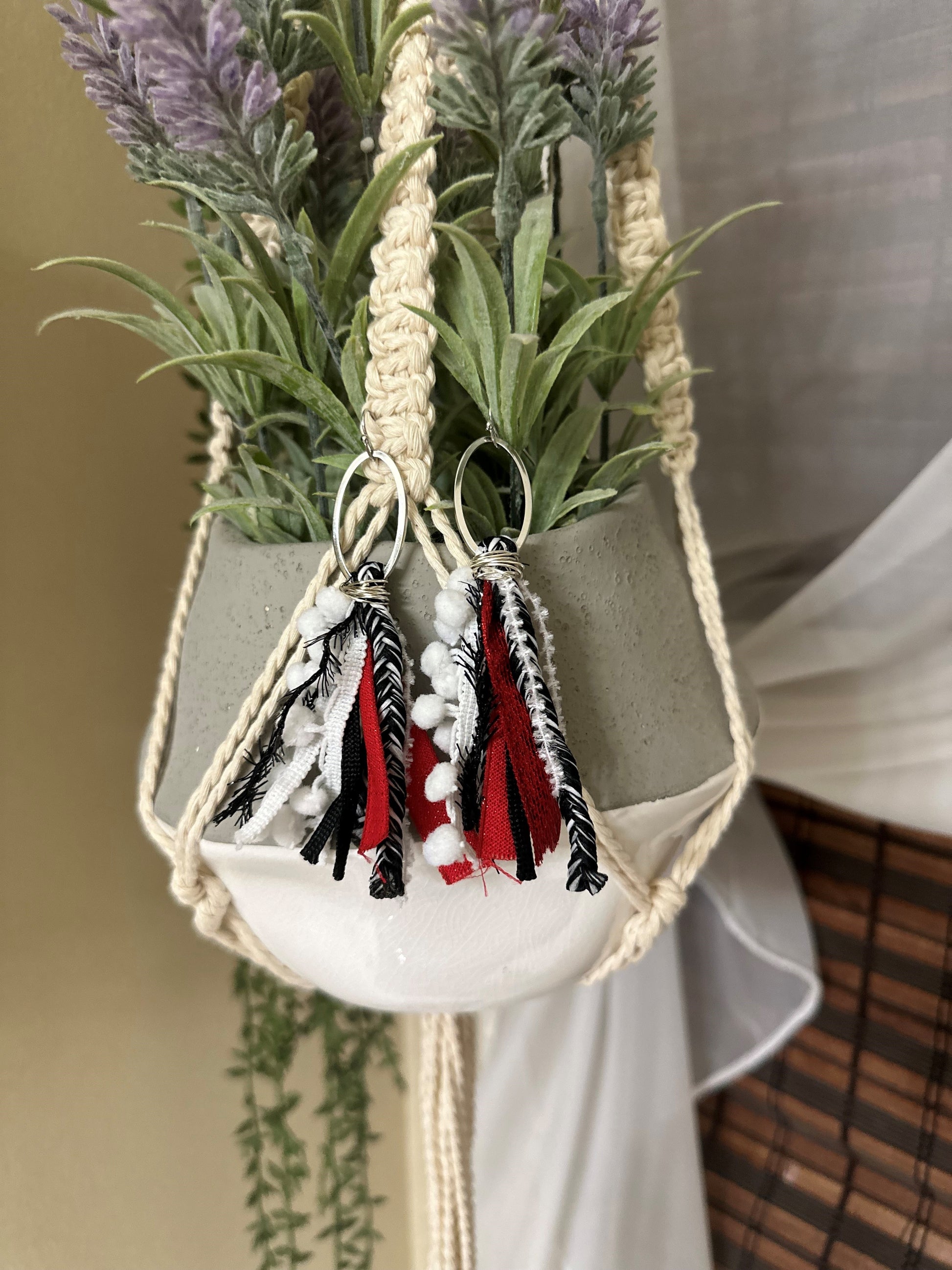Cheer on the Georgia Bulldogs with our new spin on Game Day this year. Hand selected ribbons secured to an oval silver hoop. Fun and perfect for your Game Day outfit!