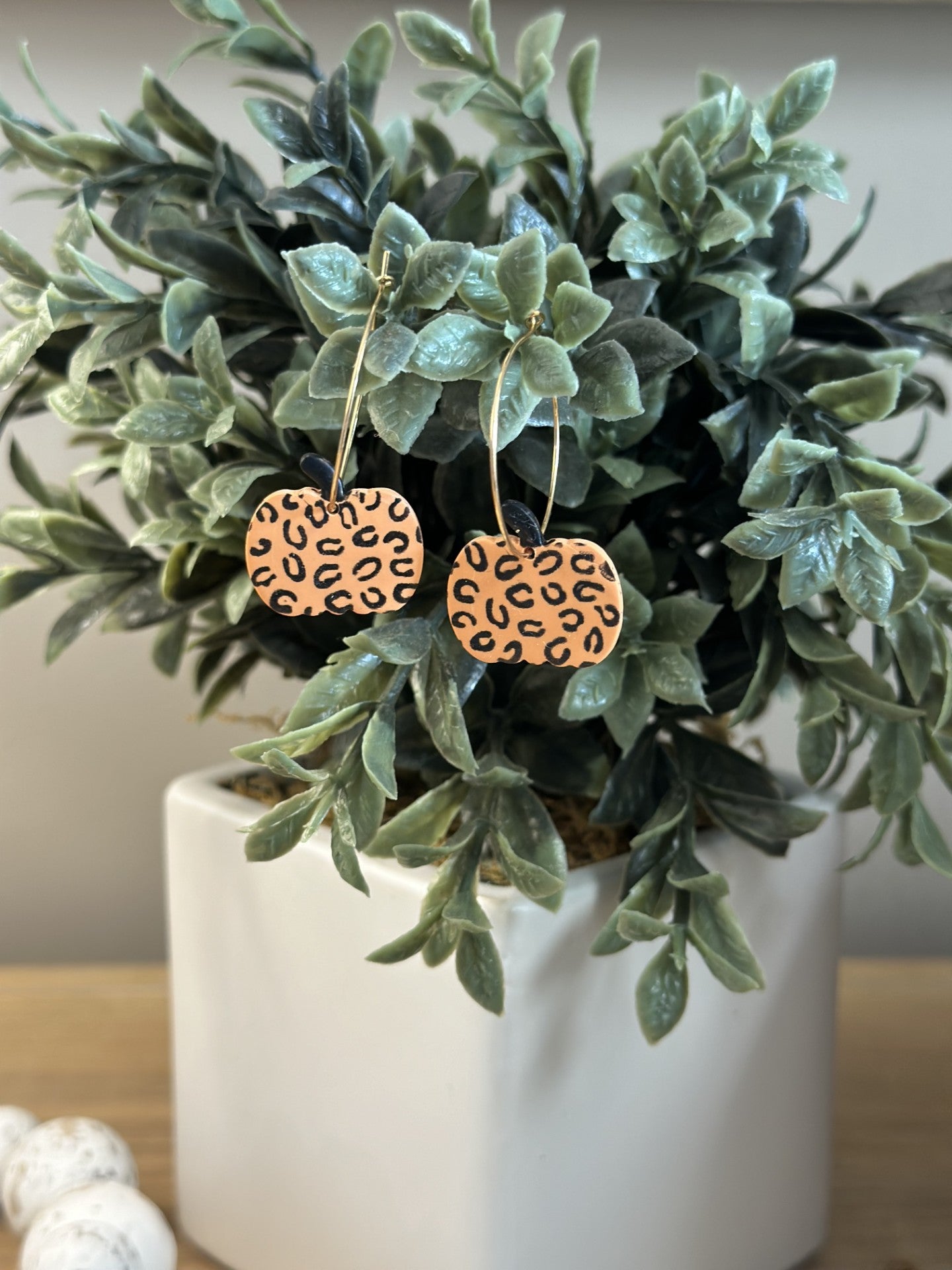 Embrace the perfect blend of autumn charm and wild style with our Wild Pumpkin Hoops. These unique earrings combine a classic pumpkin shape with a bold leopard print, creating a statement piece that's both festive and fierce. Crafted with lightweight materials, they hang gracefully from hypoallergenic gold hoops. These earrings are for those who love to stand out in style.